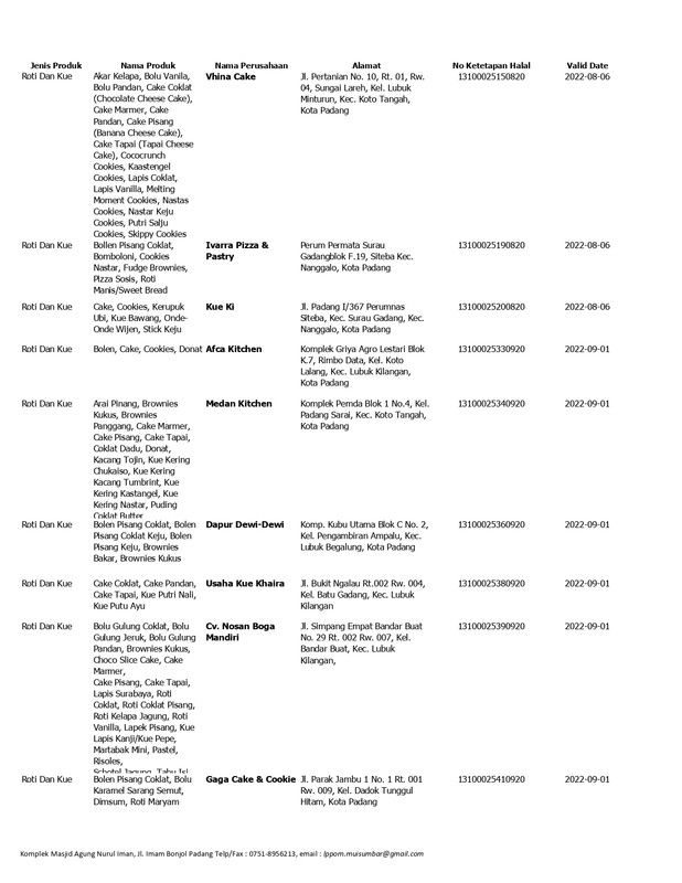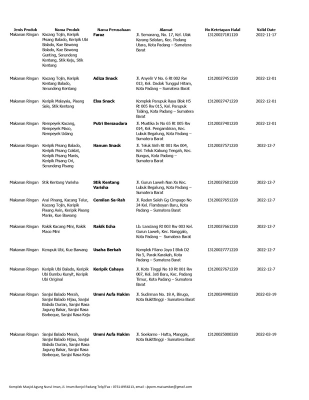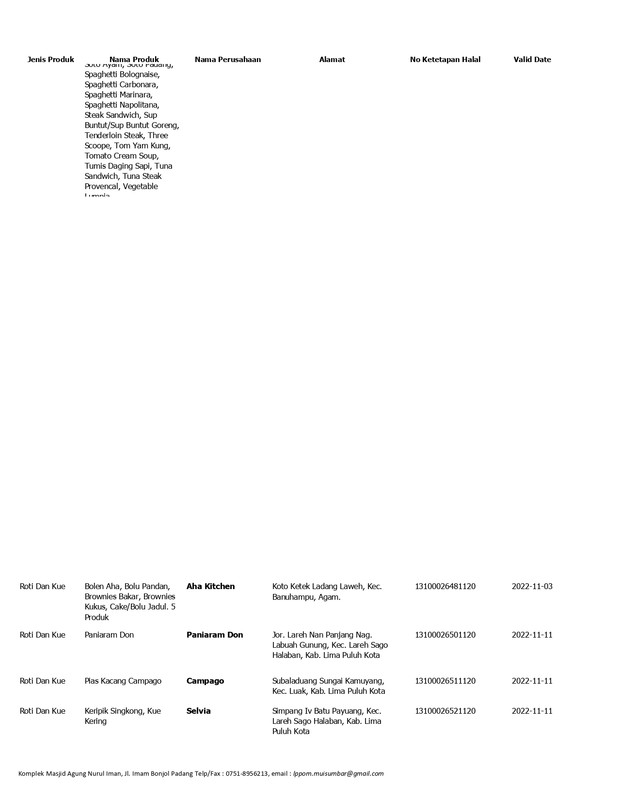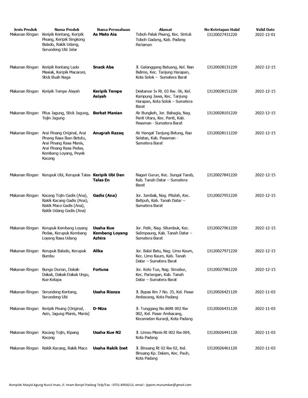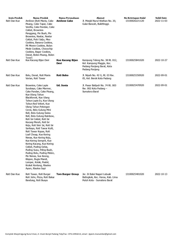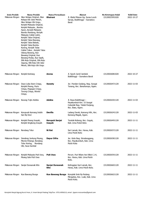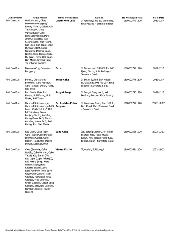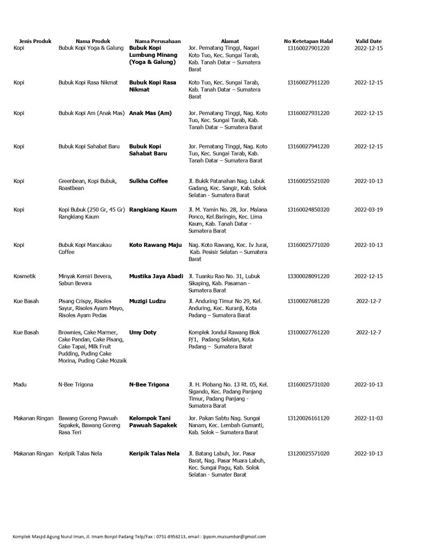 Daftar Produk Halal LPPOM MUI Sumbar