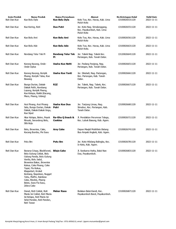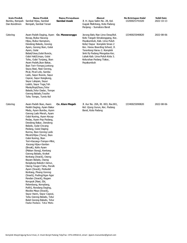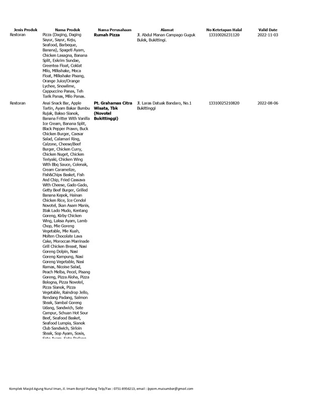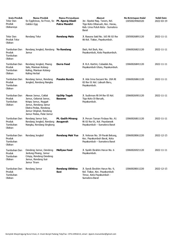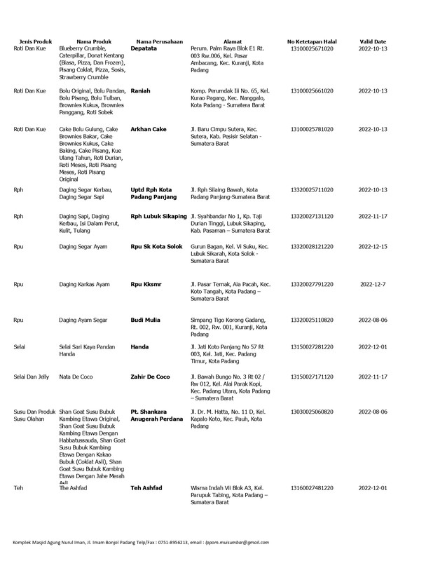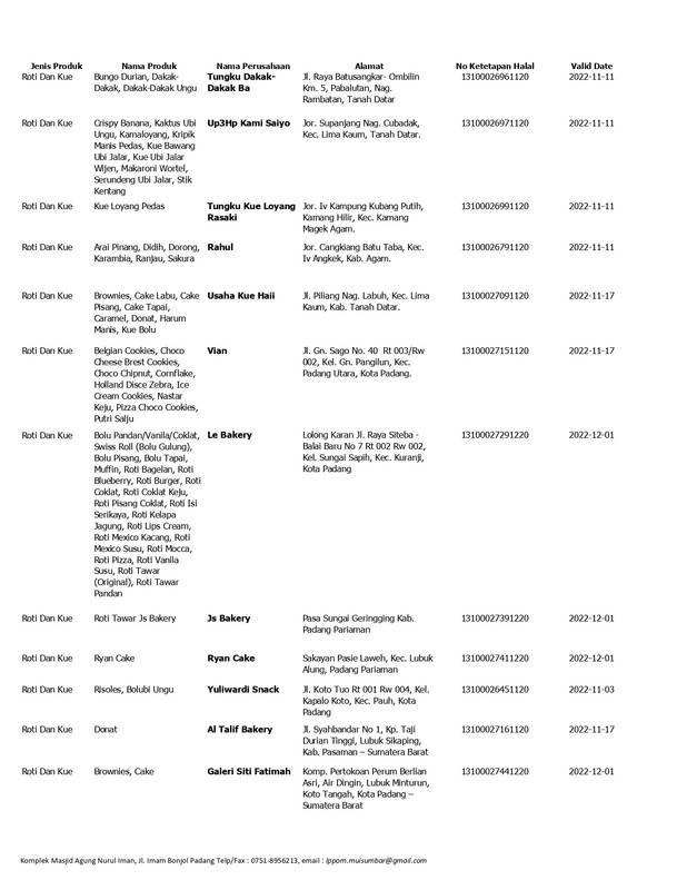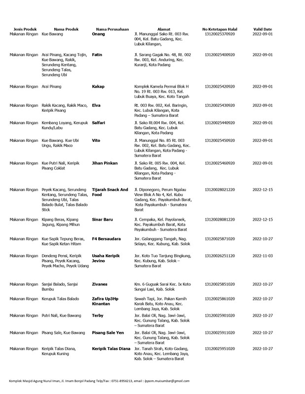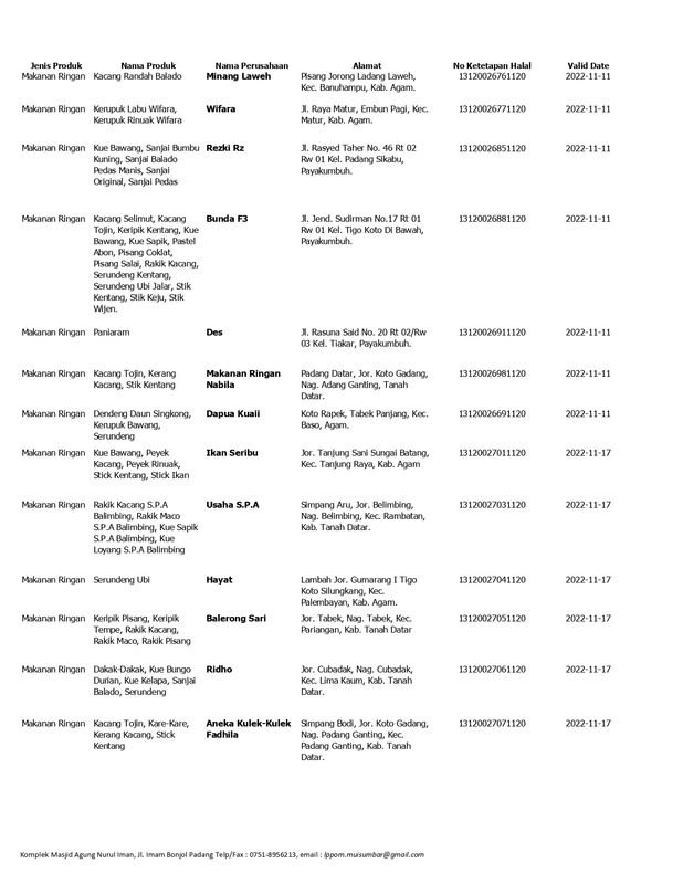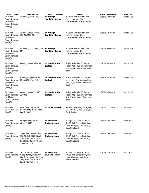 Daftar Produk Halal LPPOM MUI Sumbar